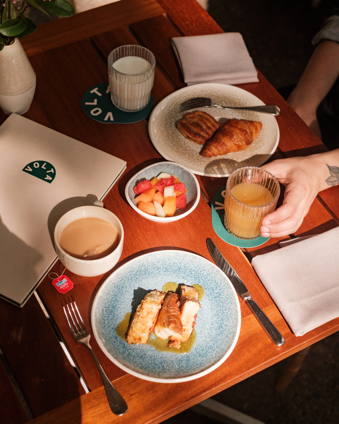 Un viatge culinari al llarg de la costa mediterrània, el xef Andrea De Benedictis ha creat una carta creativa inspirada en els sabors vius que va trobar al llarg del camí, des d’Espanya i Itàlia fins a França. Cuinat sobre les flames a la nostra bonica cuina oberta, s’elaboren plats senzills però deliciosos amb els millors ingredients de la zona. En el ben conegut esperit mediterrani de la generositat, cada plat està pensat també per a ser compartit. Al restaurant Volta, al Born, estem orgullosos de col·laborar amb la propera comunitat catalana de petits productors ecològics, formatgers i viticultors, que tenen la passió per l’elaboració d’ingredients destacats utilitzant mètodes sostenibles i tradicionals.